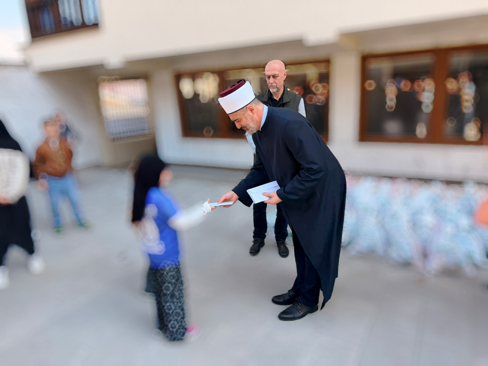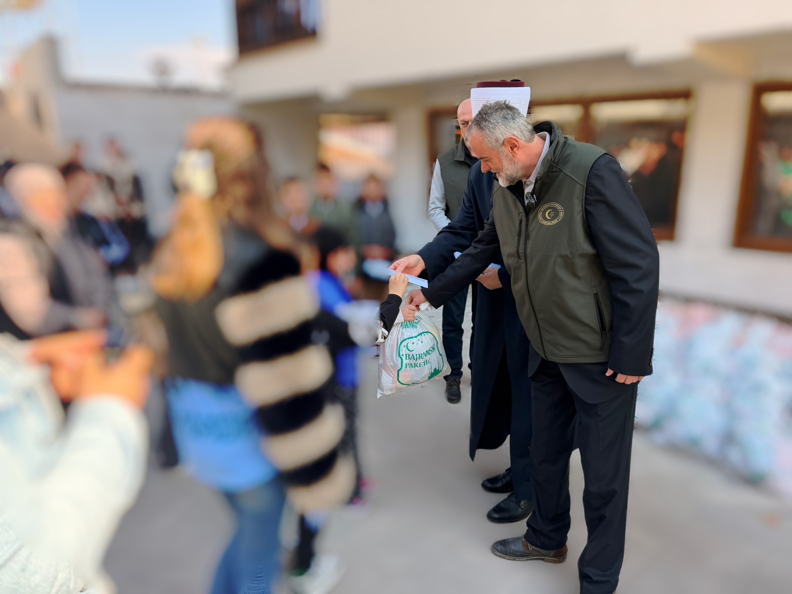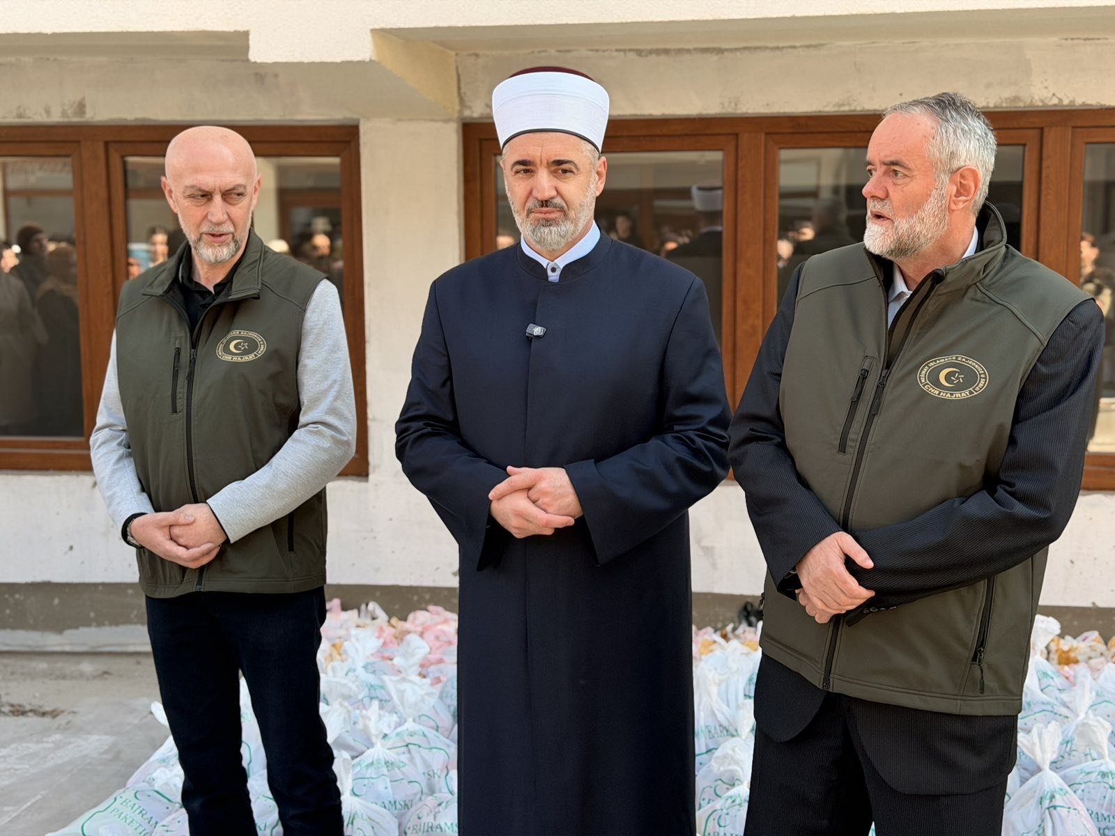 “Evo u ovim posljednjim danima mubarek Ramazana, kada sa posebnim ushićenjem činimo ibadet, nastojeći da Allahovu milost dodatno zaslužimo i njegov oprost dobijemo, tražeći najvredniju Kadersku noć, danas smo se u ovom 25. danu okupili ovdje da uradimo još jedan lijep i human posao — da pomognemo jedni drugima, a zapravo da ove lekcije Ramazana, koje nas uče strpljivosti i međusobnoj solidarnosti, pokažemo na djelu. Hvala Allahu, ovog Ramazana Islamska zajednica je imala izobilje aktivnosti koje ste mogli pratiti — od naših redovnih iftara u vakufskim kuhinjama, preko humanitarnih paketa koje smo dijelili širom zajednice, preko vaučera koje smo također podijelili, ali i drugih akcija koje su itekako važne da se kroz njih pokaže briga ove naše zajednice i njena snaga prema svojim članovima, muslimanima i ljudima kojima je potrebna naša solidarnost i podrška. Hvala Allahu, nastavljamo ovu aktivnost. Vjerujem da se i ova aktivnost unapređuje, ali isto tako raste i broj onih koji žele da učestvuju u ovoj akciji. Ja prije svega želim da zahvalim Allahu Uzvišenom koji nam je darovao ovu ljepotu i sve ove blagodati — prije svega mir, sigurnost, ali i izobilje Allahovih blagodati, da možemo uživati u ibadetima Ramazana, ali isto tako da možemo uživati u blagodatima koje nam je darovao i zahvaljivati Mu na ovaj način putem dijeljenja našeg zekata, putem dijeljenja naše sadake. Jer dio onoga što se udijeli na ime zekata i sadekatul-fitra dođe i do vas, do tih majki koje su primile na sebe brigu o svojoj djeci, koje je Uzvišeni Gospodar iskušao na poseban način.”, kazao je dr. Rešad ef. Plojović